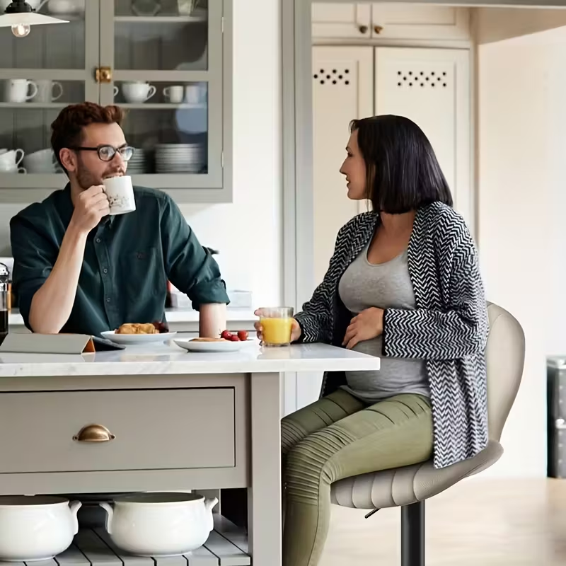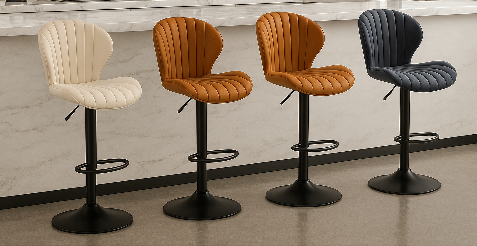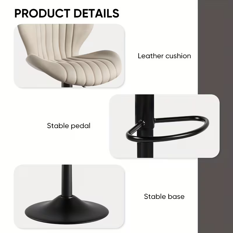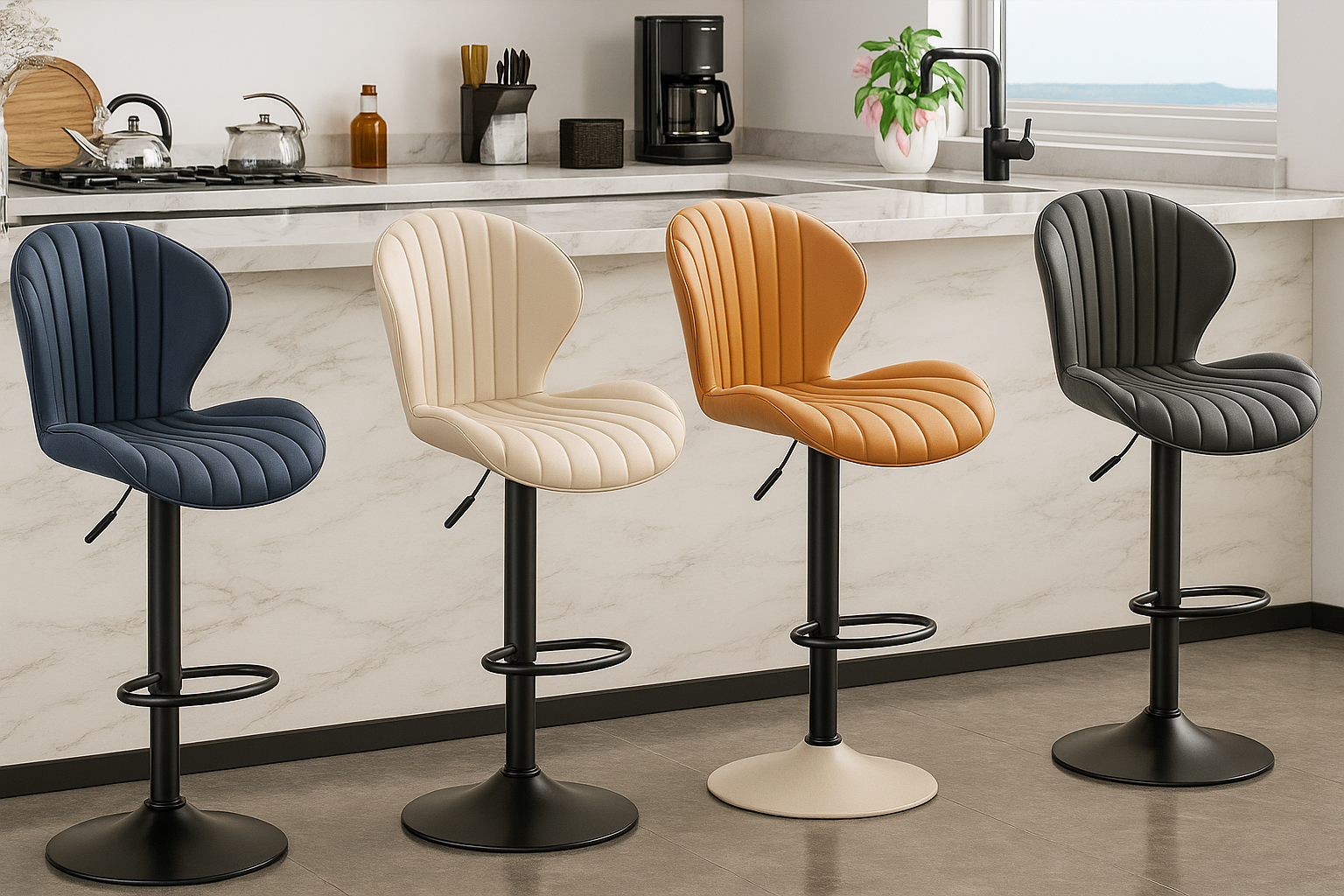 The height can be adjusted, making the chairs suitable for most kitchen and bar surfaces. To choose correctly, measure your countertop and compare the value with the chair dimensions listed in the product description. The adjustment mechanism allows you to set a comfortable seating level. This helps create a pleasant position for meals, conversations, or work.