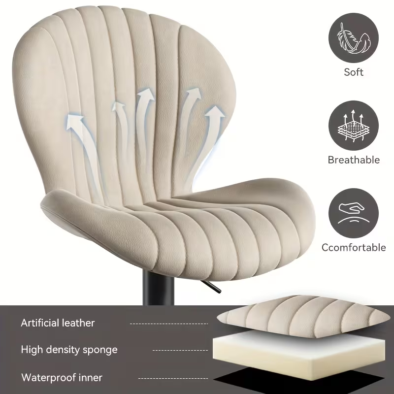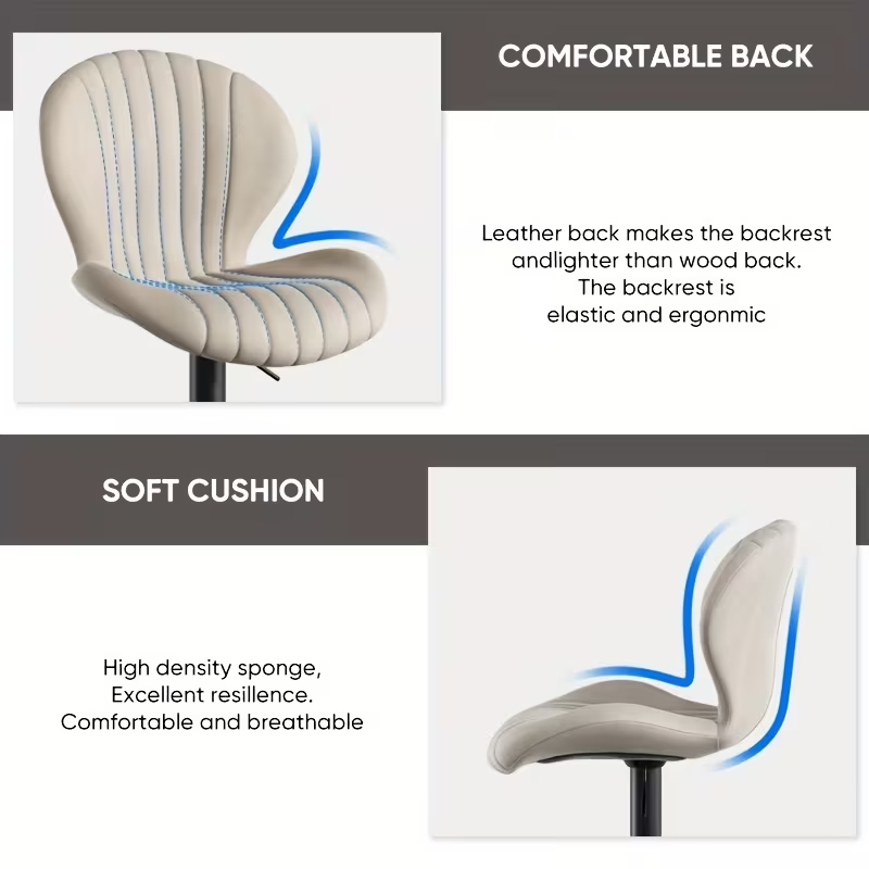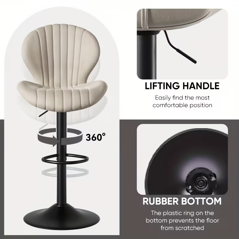 These chairs work well in kitchens, bar areas, and open studios. The soft seat with dense filling creates a gentle feel when sitting, while the 360° rotation adds convenience. The metal base provides balanced stability. Each set includes colors that blend naturally into different interior styles. Choose the mood that fits your space.