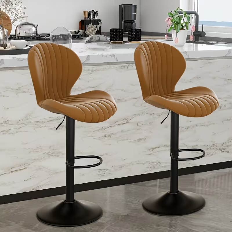 The set consists of two chairs that create a pleasant feeling during use. The shape of the backrest supports the natural position of the body, and the memory foam seat surface smoothly follows the contours. The metal frame forms a stable position and harmoniously blends with the interior of the kitchen or bar area. The rotating mechanism allows you to freely change the direction of your gaze while talking or working. The adjustment handle allows you to choose a favorable height. The materials are easy to clean and maintain a neat appearance. Each chair feels comfortable on hard surfaces. The set is suitable for home, cafe or meeting spaces.